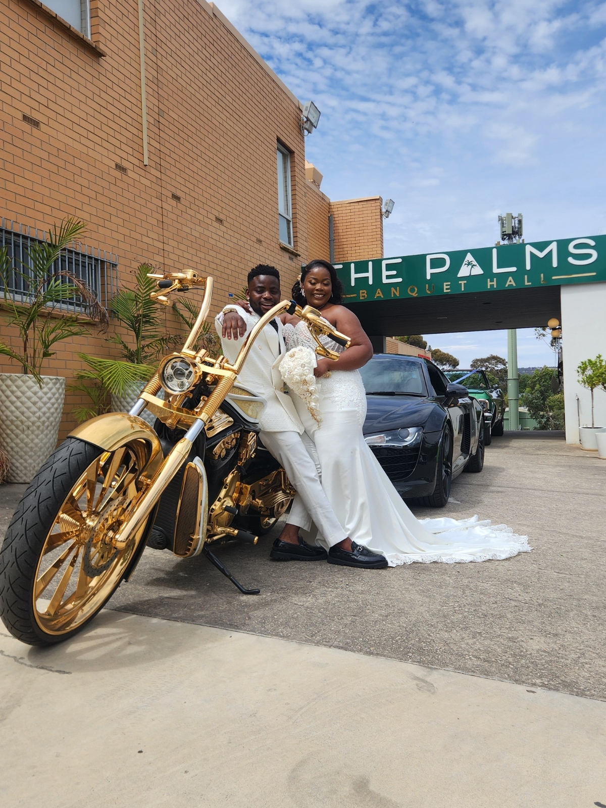 The package includes the Gold Harley Davidson for your wedding procession, a professional driver, and the option to customise decorations to match your wedding theme.