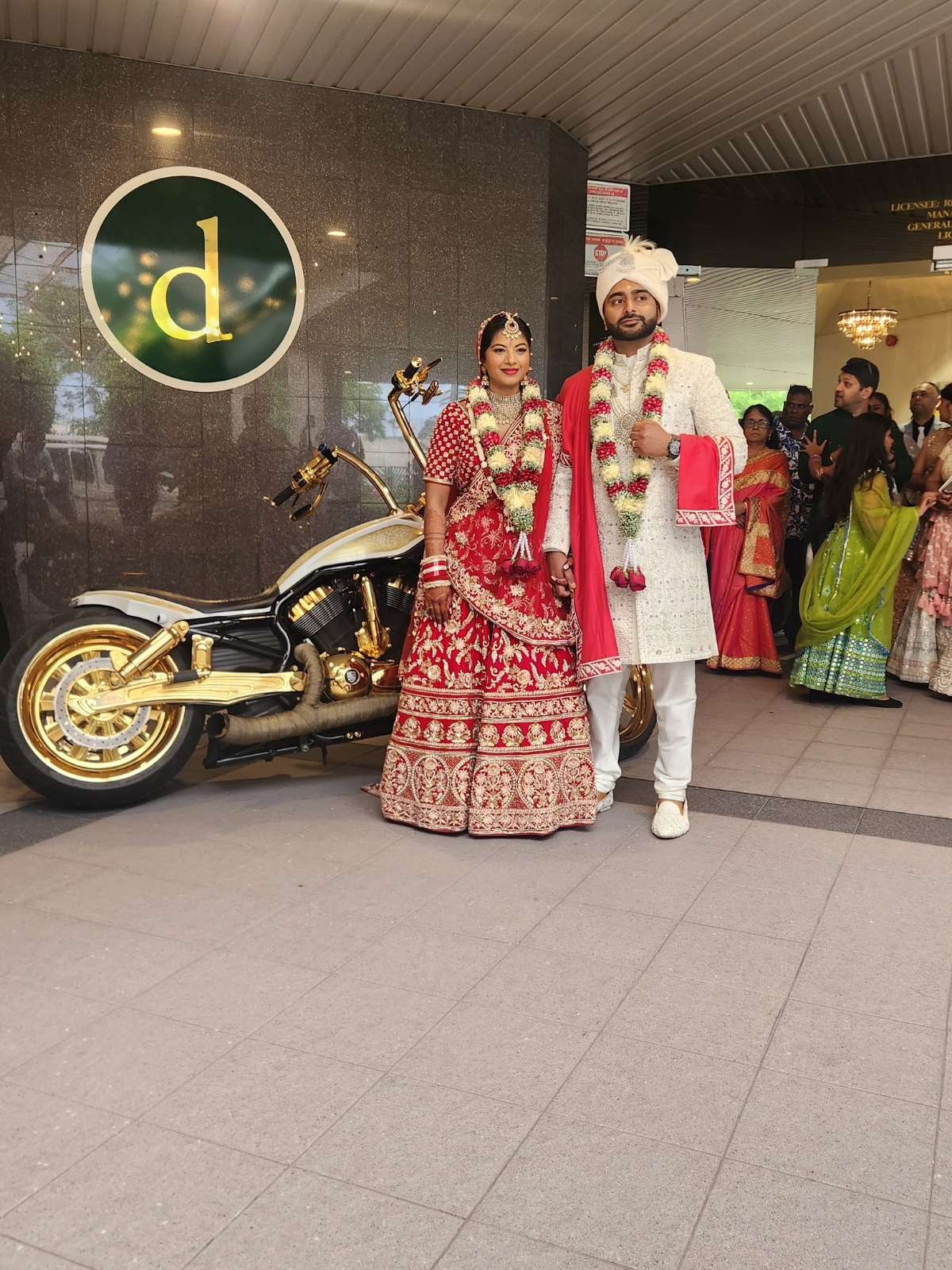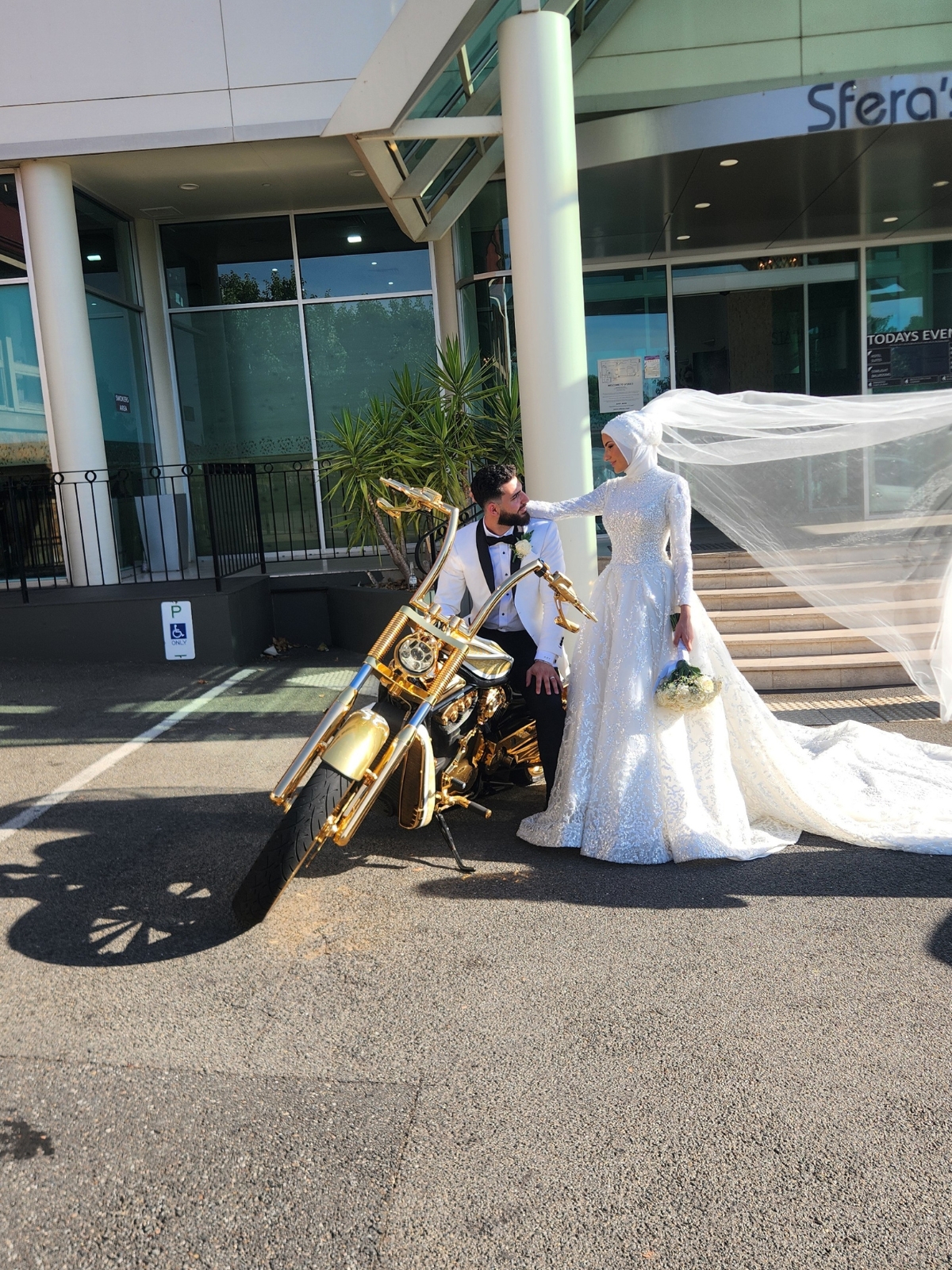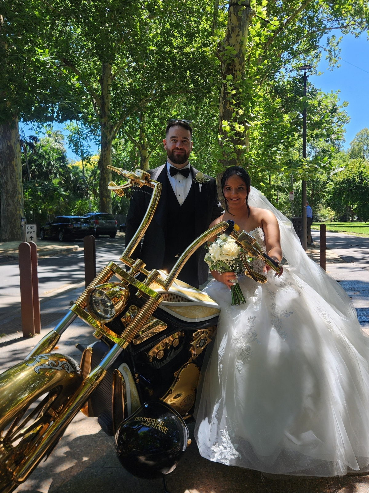 Our service stands out because of our exclusive Gold Harley Davidson, detailed with 24-carat gold. It offers a unique and luxurious experience that’ll make your wedding procession absolutely unforgettable.